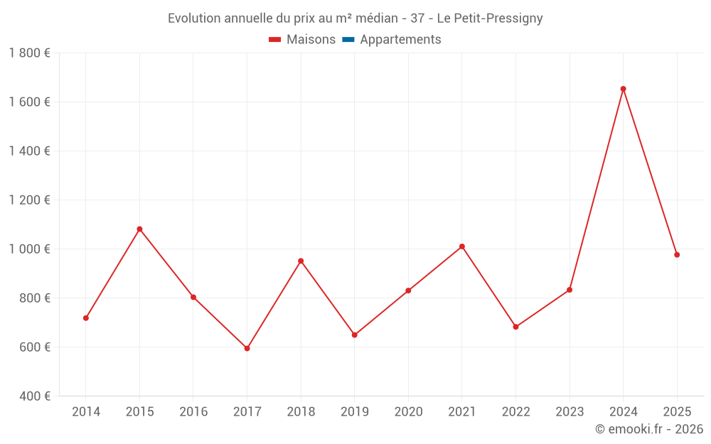 Le prix au m² des maisons a diminué de 41% depuis 1 an, mais il a augmenté de 50% en 6 ans.