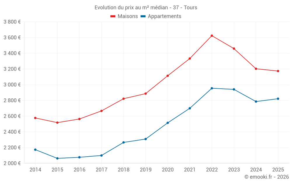 Carte des prix de l'immobilier dans la commune de Tours, choississez une section pour voir les transactions par parcelle.