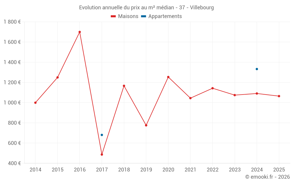 Le prix au m² des maisons a augmenté de 119% depuis 8 ans, mais il a diminué de 37% en 9 ans.