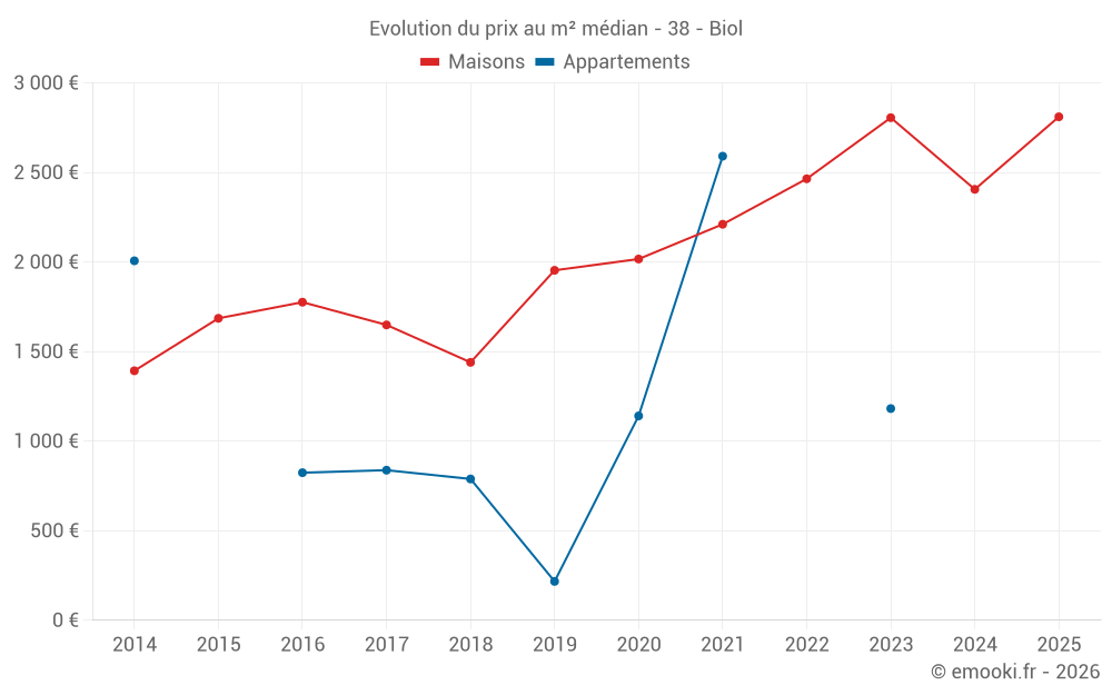 Carte des prix de l'immobilier dans la commune de Biol, choississez une section pour voir les transactions par parcelle.