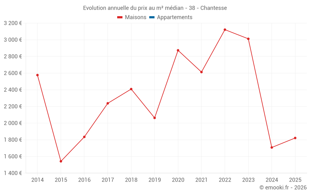 Carte des prix de l'immobilier dans la commune de Chantesse, choississez une section pour voir les transactions par parcelle.