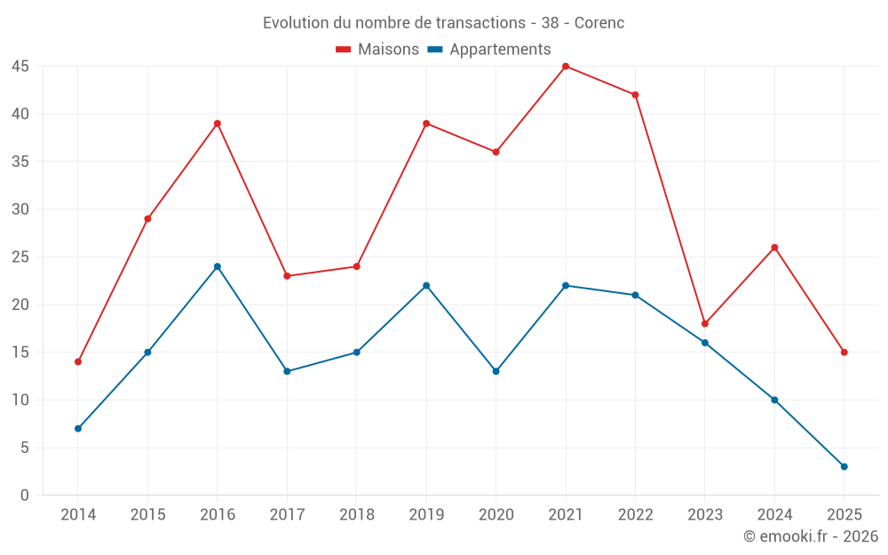 Carte des prix de l'immobilier dans la commune de Corenc, choississez une section pour voir les transactions par parcelle.
