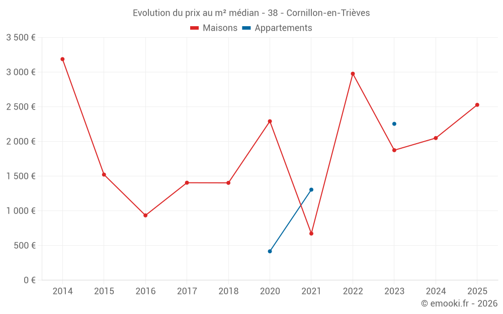 Attention, dernière année incomplète. Projections effectuées sur la base des proportions entre semestres de l'année précédente au niveau départemental/national et par catégorie de bien.