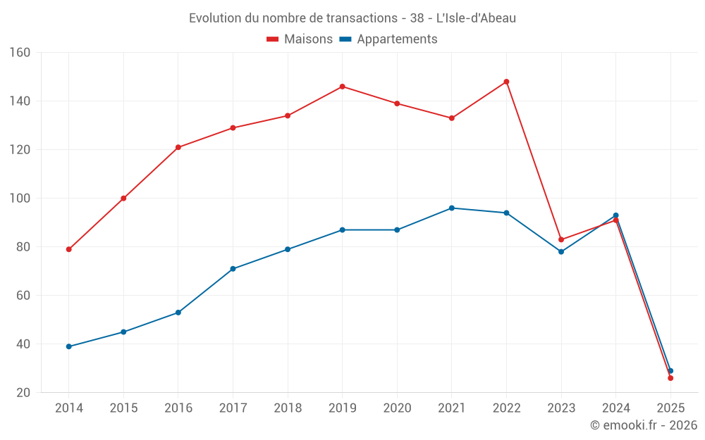 Attention, dernière année incomplète. Projections effectuées sur la base des proportions entre semestres de l'année précédente au niveau départemental/national et par catégorie de bien.