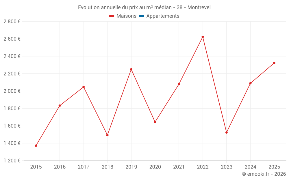 Evolution du prix au m² médian des maisons