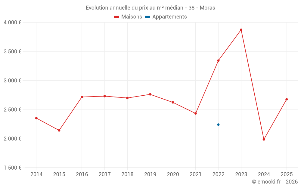 Carte des prix de l'immobilier dans la commune de Moras, choississez une section pour voir les transactions par parcelle.