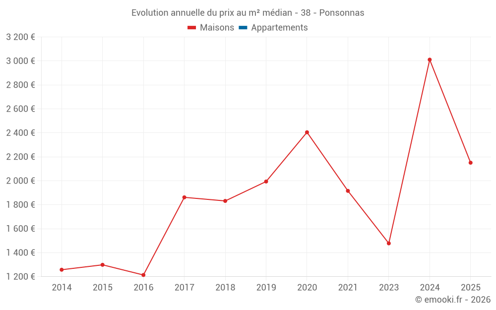 Carte des prix de l'immobilier dans la commune de Ponsonnas, choississez une section pour voir les transactions par parcelle.