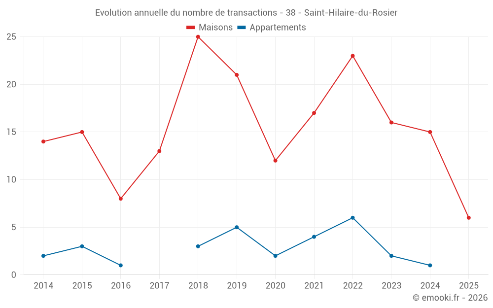 Le prix médian sur les 27 transactions de maisons des 24 derniers mois dans la commune de Saint-Hilaire-du-Rosier était de 2 161 € par mètre carré pour une valeur foncière médiane de 215 650 €. Sur cette période 60% des transactions se sont situées entre 1 783 et 2 714 € par mètre carré (du 2ème au 8ème déciles).