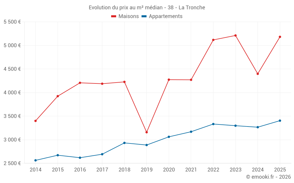 Carte des prix de l'immobilier dans la commune de la Tronche, choississez une section pour voir les transactions par parcelle.