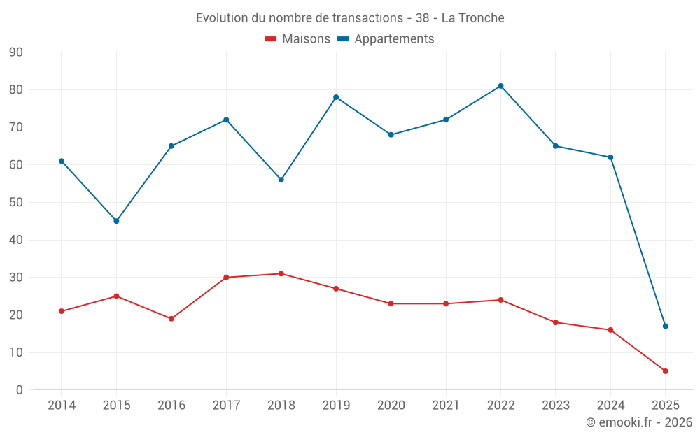 Attention, dernière année incomplète. Projections effectuées sur la base des proportions entre semestres de l'année précédente au niveau départemental/national et par catégorie de bien.