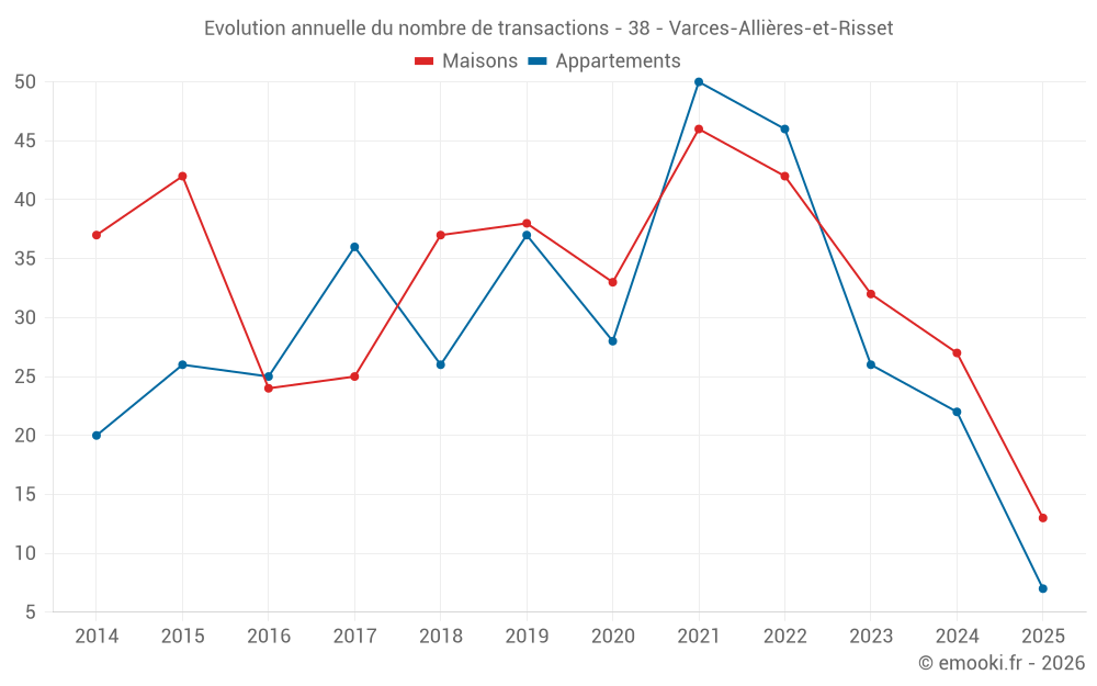 Le prix médian sur les 28 transactions de maisons des 12 derniers mois dans la commune de Varces-Allières-et-Risset était de 3 415 € par mètre carré pour une valeur foncière médiane de 354 000 €. Sur cette période 60% des transactions se sont situées entre 3 063 et 4 224 € par mètre carré (du 2ème au 8ème déciles).