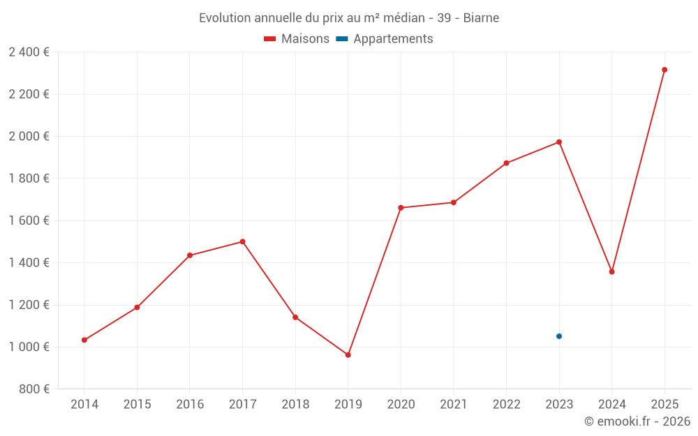 Carte des prix de l'immobilier dans la commune de Biarne, choississez une section pour voir les transactions par parcelle.