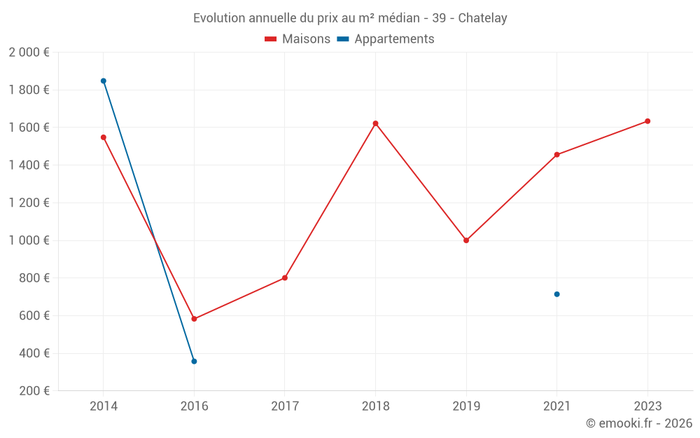 Prix médian sur les 2 transactions des 120 derniers mois.