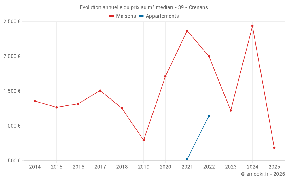 Prix du m² à Crenans