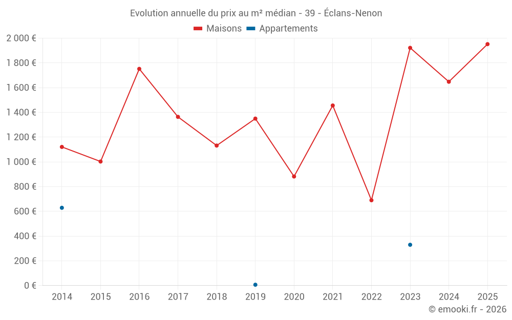 Prix médian sur les 2 transactions des 120 derniers mois.
