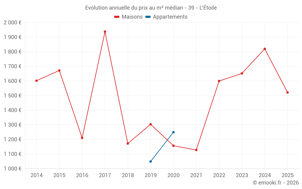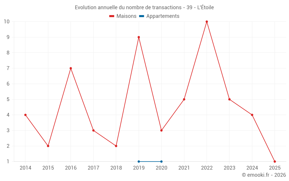 Prix médian sur les 2 transactions des 120 derniers mois.