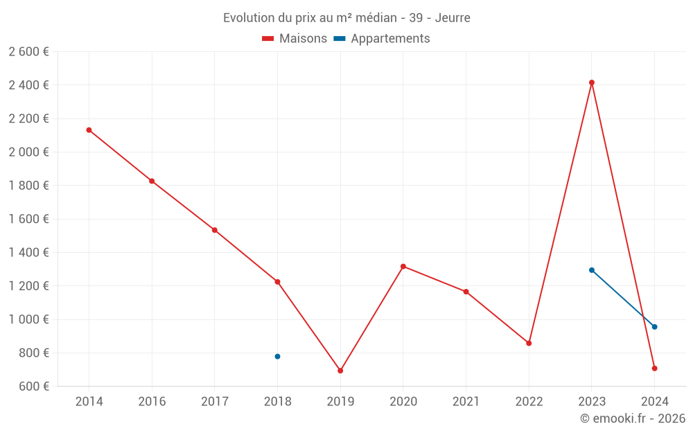 Attention, dernière année incomplète. Projections effectuées sur la base des proportions entre semestres de l'année précédente au niveau départemental/national et par catégorie de bien.