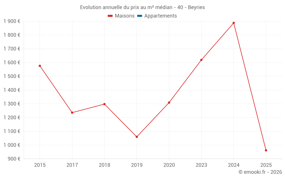 Attention, dernière année incomplète. Projections effectuées sur la base des proportions entre semestres de l'année précédente au niveau départemental/national et par catégorie de bien.