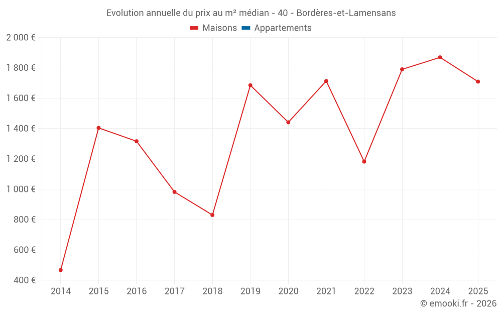 Evolution du prix au m² médian des maisons