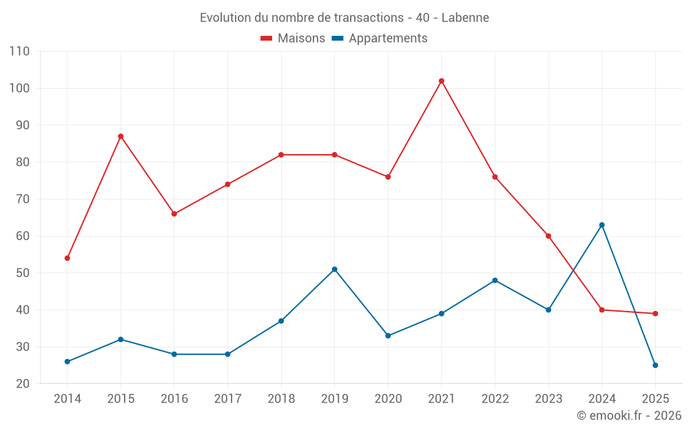 Attention, dernière année incomplète. Projections effectuées sur la base des proportions entre semestres de l'année précédente au niveau départemental/national et par catégorie de bien.