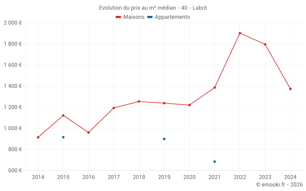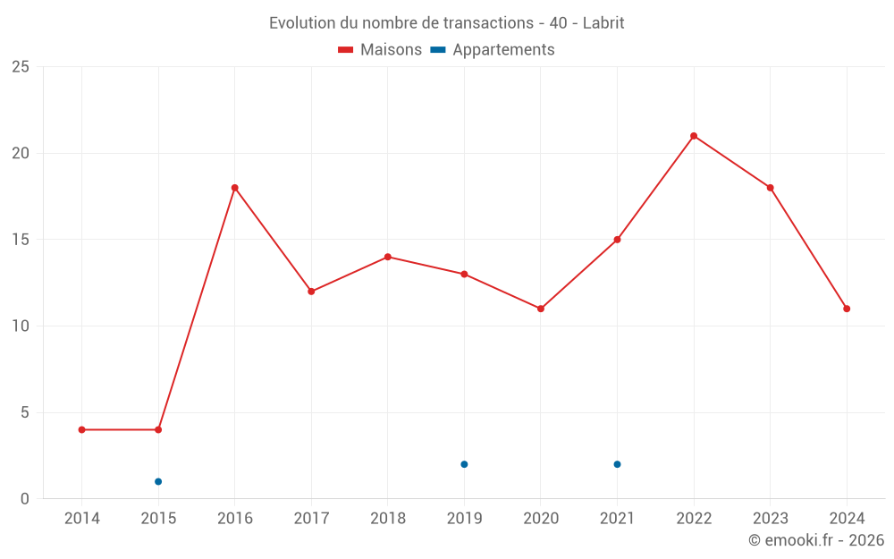 Carte des prix de l'immobilier dans la commune de Labrit, choississez une section pour voir les transactions par parcelle.