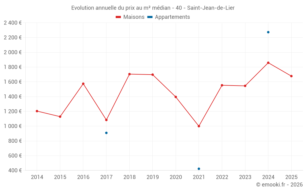 Le prix au m² des maisons a diminué de 10% depuis 1 an, mais il a augmenté de 68% en 4 ans.