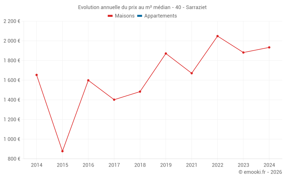Attention, dernière année incomplète. Projections effectuées sur la base des proportions entre semestres de l'année précédente au niveau départemental/national et par catégorie de bien.