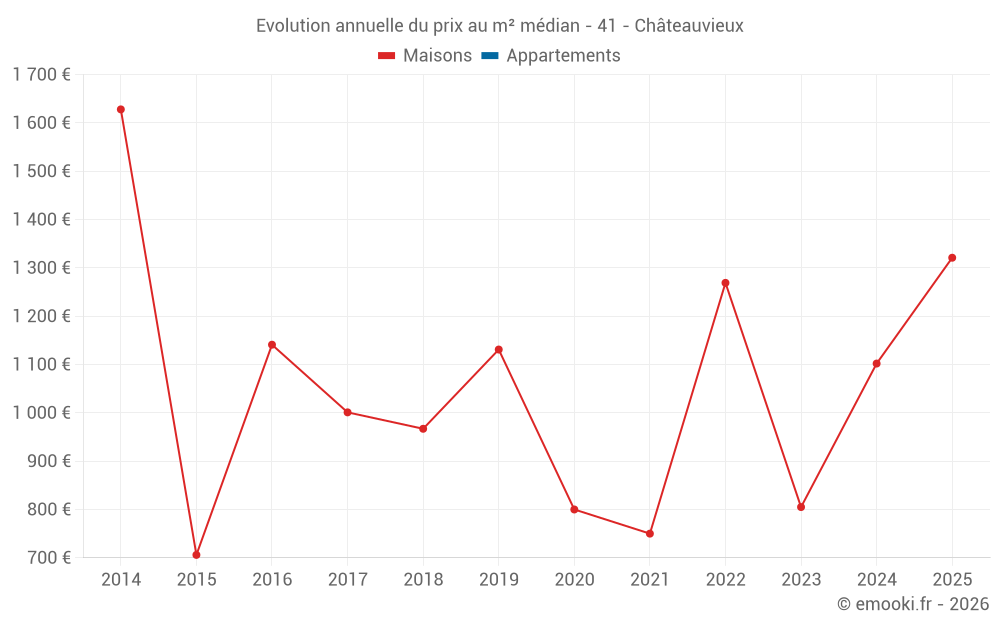 Evolution du prix au m² médian des maisons