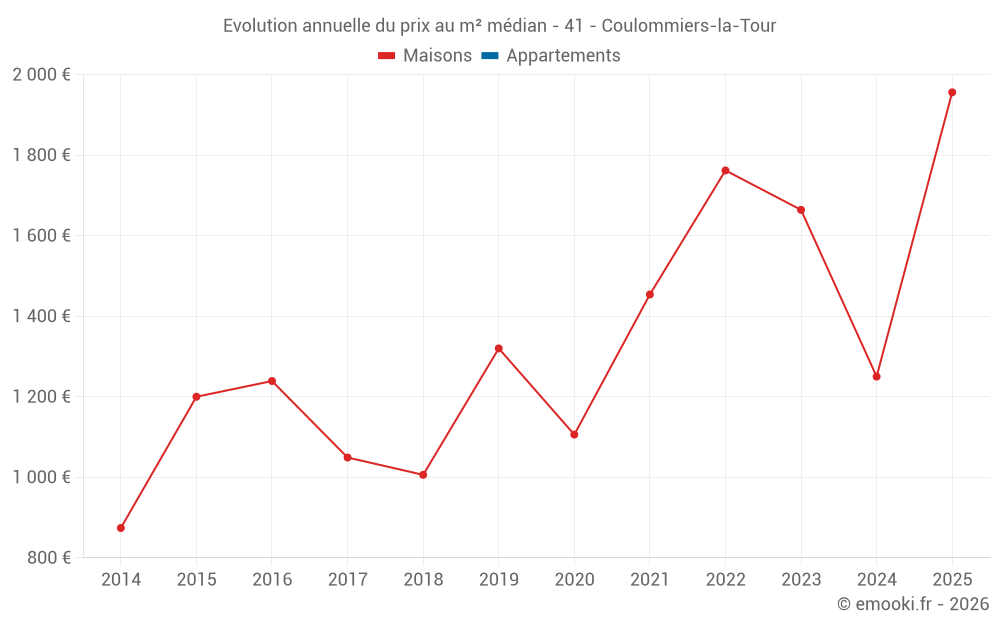 Evolution du prix au m² médian des maisons