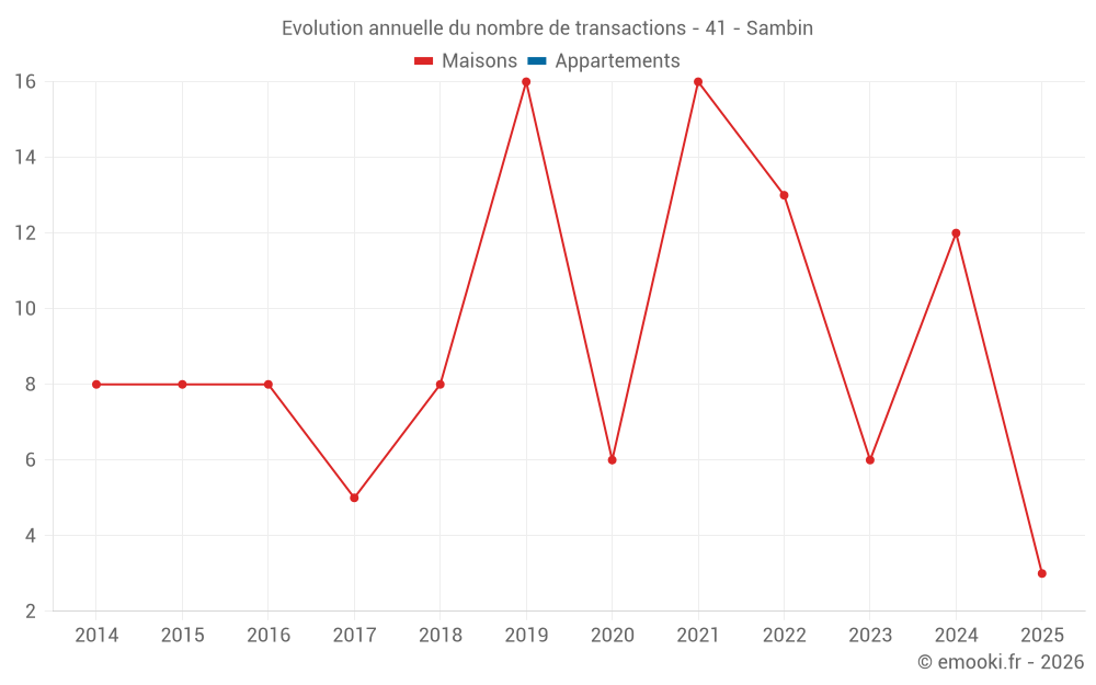 Le prix médian sur les 19 transactions de maisons des 24 derniers mois dans la commune de Sambin était de 1 367 € par mètre carré pour une valeur foncière médiane de 128 500 €. Sur cette période 60% des transactions se sont situées entre 659 et 1 864 € par mètre carré (du 2ème au 8ème déciles).