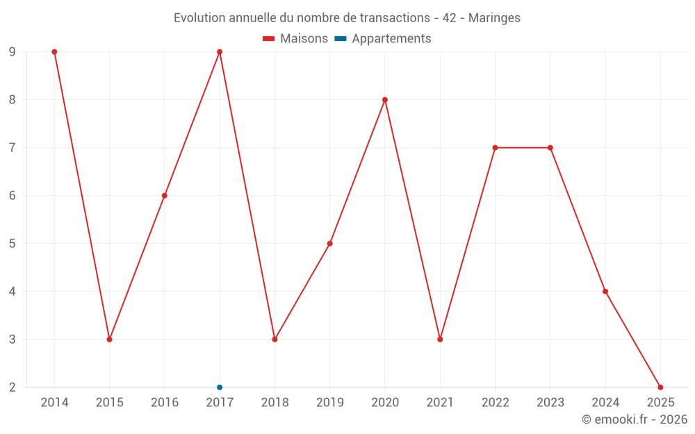 Prix médian sur les 2 transactions des 120 derniers mois.