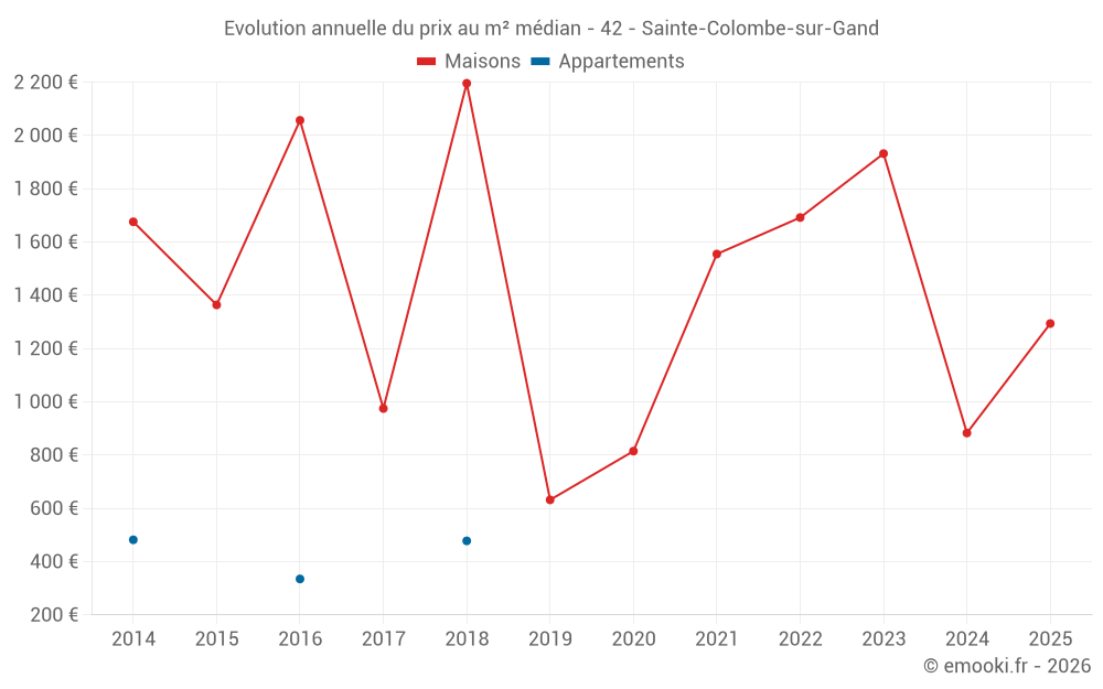 Evolution du prix au m² médian des maisons