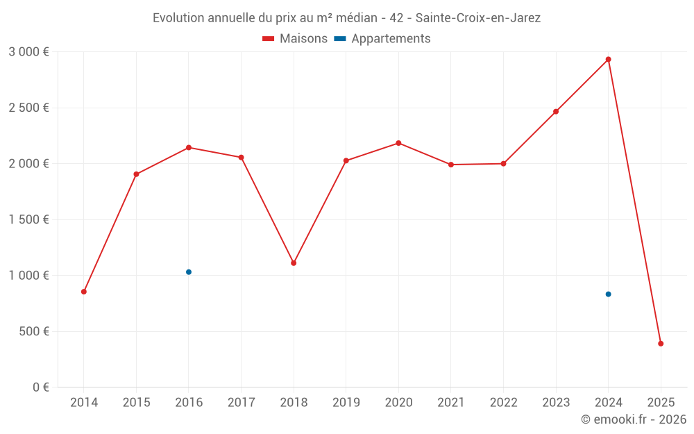 Prix médian sur les 2 transactions des 120 derniers mois.