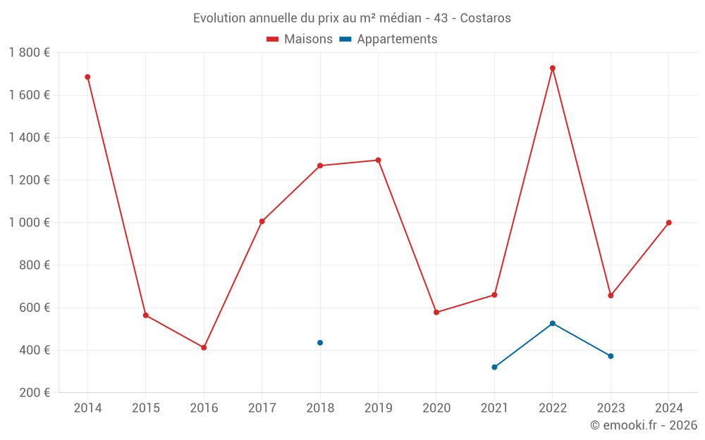 Attention, dernière année incomplète. Projections effectuées sur la base des proportions entre semestres de l'année précédente au niveau départemental/national et par catégorie de bien.