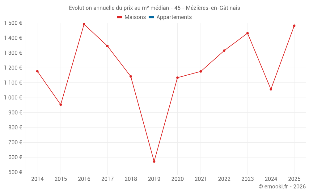 Attention, dernière année incomplète. Projections effectuées sur la base des proportions entre semestres de l'année précédente au niveau départemental/national et par catégorie de bien.