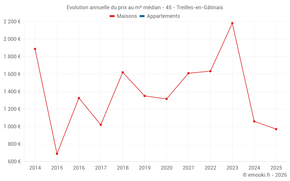 Evolution du prix au m² médian des maisons
