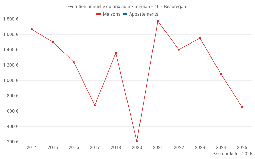 Evolution du prix au m² médian des maisons