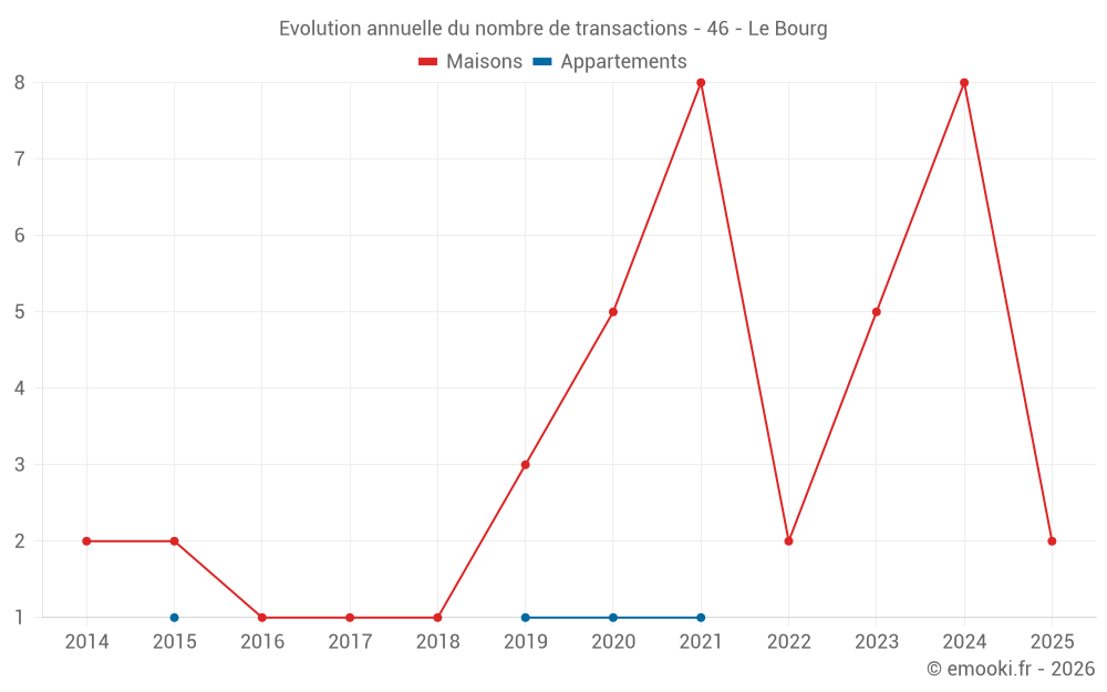 Attention, dernière année incomplète. Projections effectuées sur la base des proportions entre semestres de l'année précédente au niveau départemental/national et par catégorie de bien.