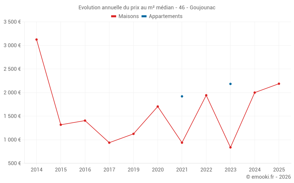 Prix médian sur les 2 transactions des 120 derniers mois.
