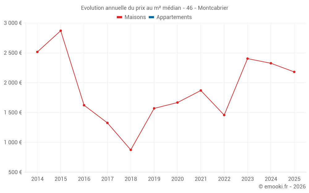 Evolution du prix au m² médian des maisons