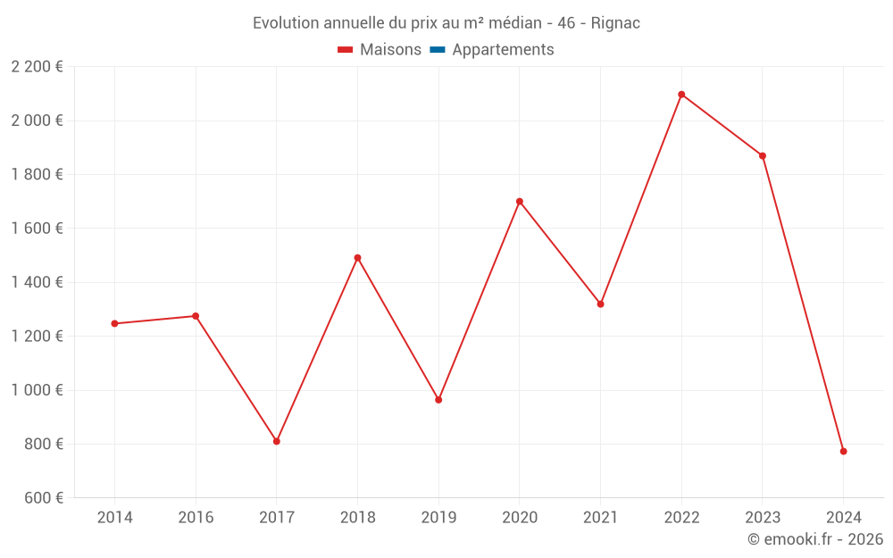 Evolution du prix au m² médian des maisons