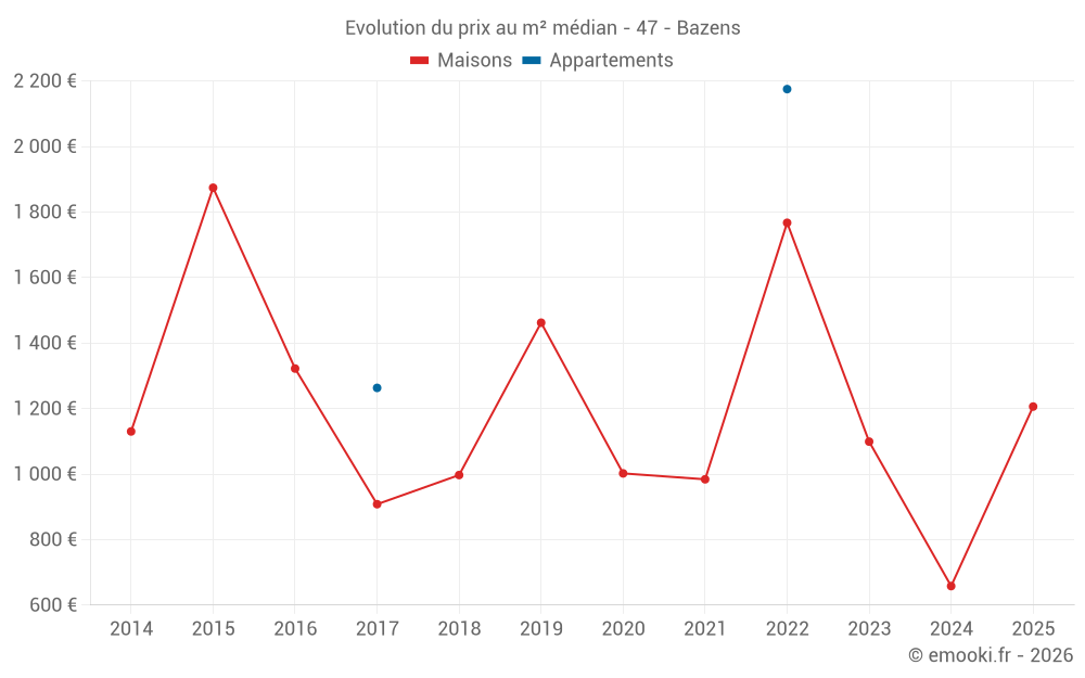 Carte des prix de l'immobilier dans la commune de Bazens, choississez une section pour voir les transactions par parcelle.