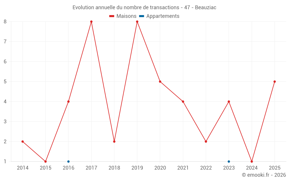 Carte des prix de l'immobilier dans la commune de Beauziac, choississez une section pour voir les transactions par parcelle.