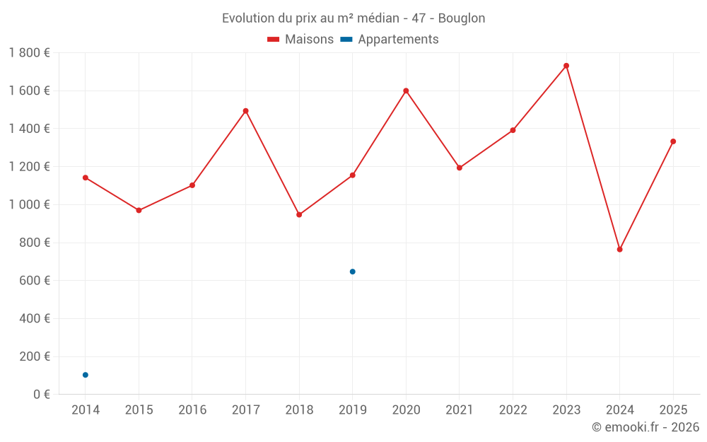 Carte des prix de l'immobilier dans la commune de Bouglon, choississez une section pour voir les transactions par parcelle.