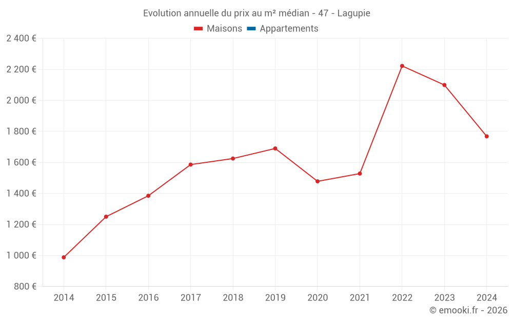 Evolution du prix au m² médian des maisons
