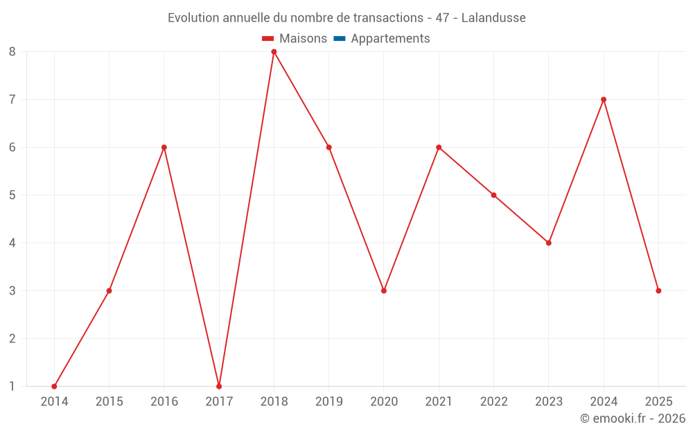 Carte des prix de l'immobilier dans la commune de Lalandusse, choississez une section pour voir les transactions par parcelle.