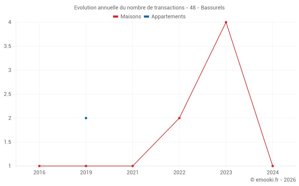 Carte des prix de l'immobilier dans la commune de Bassurels, choississez une section pour voir les transactions par parcelle.