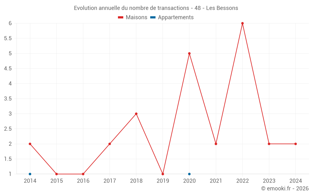 Attention, dernière année incomplète. Projections effectuées sur la base des proportions entre semestres de l'année précédente au niveau départemental/national et par catégorie de bien.