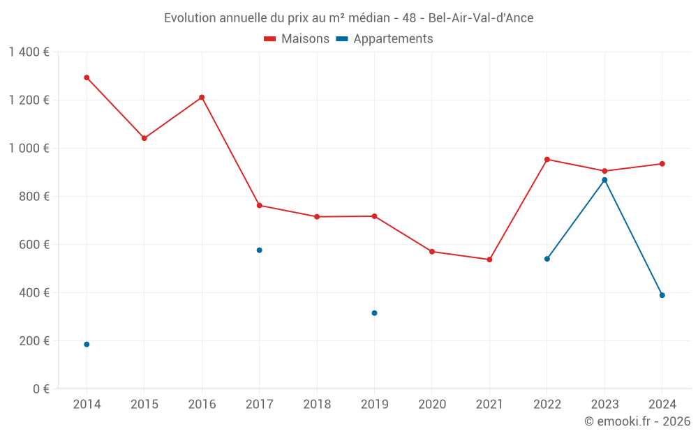 Attention, dernière année incomplète. Projections effectuées sur la base des proportions entre semestres de l'année précédente au niveau départemental/national et par catégorie de bien.