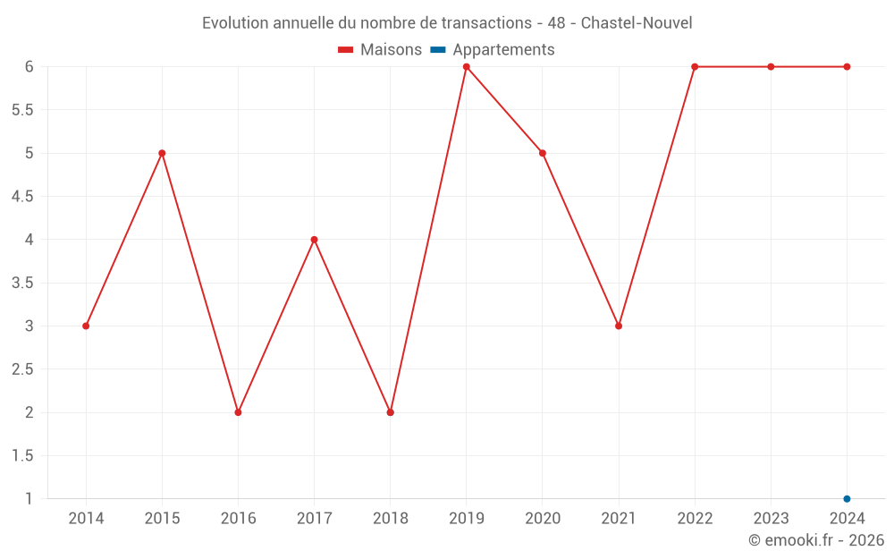 Attention, dernière année incomplète. Projections effectuées sur la base des proportions entre semestres de l'année précédente au niveau départemental/national et par catégorie de bien.